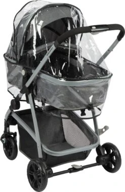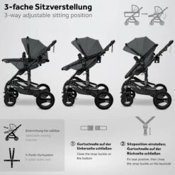 KIDUKU- 3 In 1 Combi-kinderwagen- Antraciet/zwart Buggy Incl. Autostoeltje-regenhoes- Inklapbaar