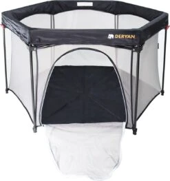 Deryan Luxe Campingbed Compleet – 120x60cm – Bodemverhoger – Verschoonblad – Opbergmand – Zwart