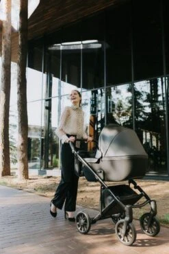 De Anex e/type combineert stijl en comfort, heeft een minimalistisch design en is tegelijkertijd erg functioneel. Het Eco lederen design geeft de kinderwagen een elegante en natuurlijke look, daarbij zorgen de luchtvrije wielen in combinatie met het schokabsorptiesysteem voor een vloeiende beweging. Ideaal voor een lange wandeling in de natuur of in de drukke stad.
