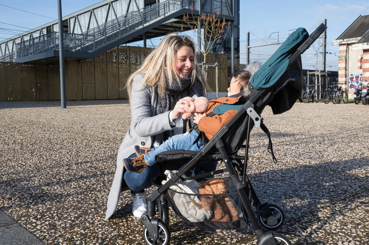 Ultracompact: Afmetingen in ingeklapte toestand: 63 x 23 x 34 cm (met wielen), 55 x 22 x 30 cm (zonder wielen) Evolutief: vanaf de geboorte met ligstand tot 22kg