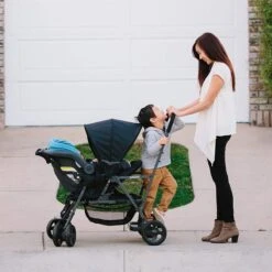 Met de meest compacte en wendbare dubbele kinderwagen verkrijgbaar, kan jouw oudere kind op het achterste platform of zitbankje zitten en staan.