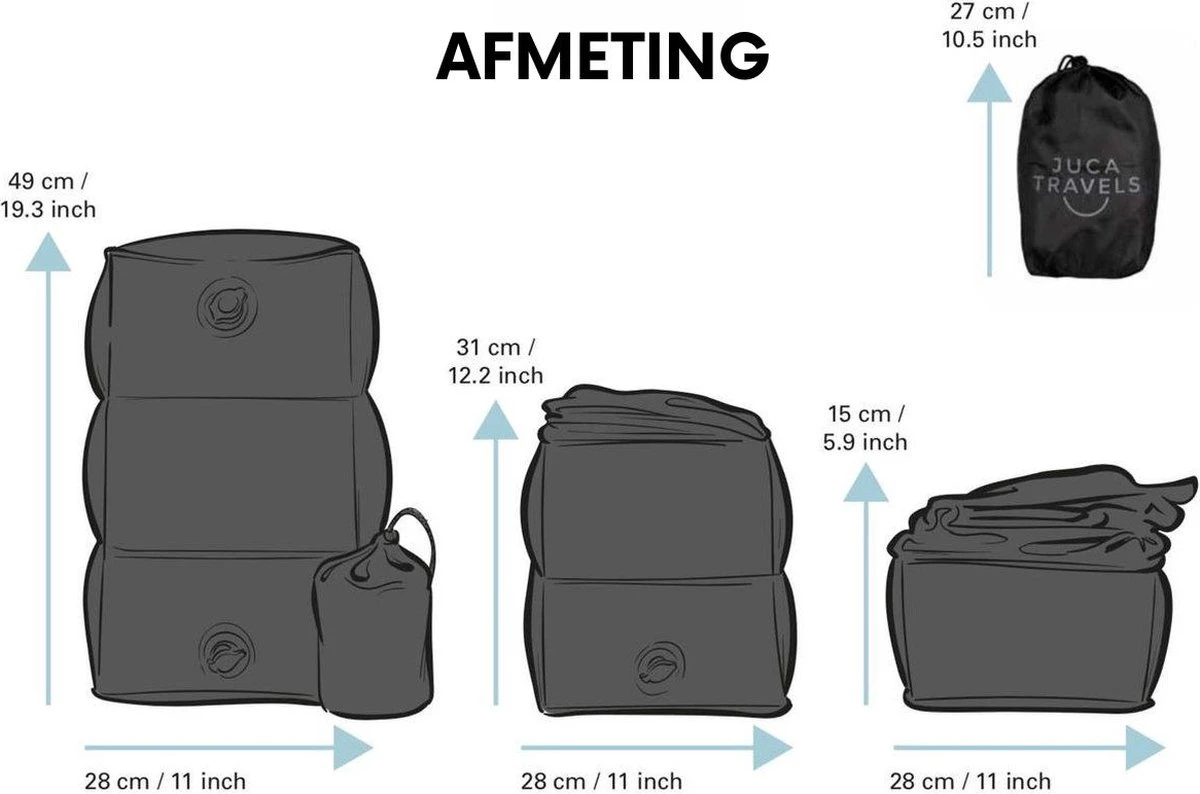 GEEN STRESS TIJDENS REIZEN; altijd een comfortabel bedje bij de hand. Gemakkelijk op te blazen, zodat kleine kinderen lekker kunnen slapen tijdens een vlucht of auto reis. Zo heb je zelf ook een relaxte reis.