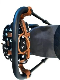 Kidzroom Black and White – Luiertas – Zwart – Ophanglussen kinderwagen – Verschoonmatje – Verstelbare schouderband.