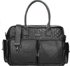 Deze verzorgingstas is een city chic model in leatherlook. Het model heeft stiksels in ruitjespatroon, wat de verzorgingstas een luxueuze uitstraling geeft. Naast de stijlvolle uitstraling is de verzorgingstas ook zeer praktisch met een ruim hoofdvak en diverse insteek en opbergvakjes. Hiermee is het een ware it-bag voor de fashionable mama’s.