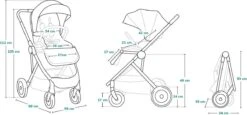 Om ervoor te zorgen dat de baby altijd comfortabel is, is de wandelwagen uitgerust met een handig verstelsysteem – het mechanisme stelt u in staat om de positie van liggend naar zittend te veranderen. Door de traploze riemverstelling kan het kind zowel genieten van een lekker dutje als nieuwsgierig naar de wereld om hem heen kijken. Door de volledig vlakke positie kan het kind de kinderwagen vanaf de geboorte gebruiken.