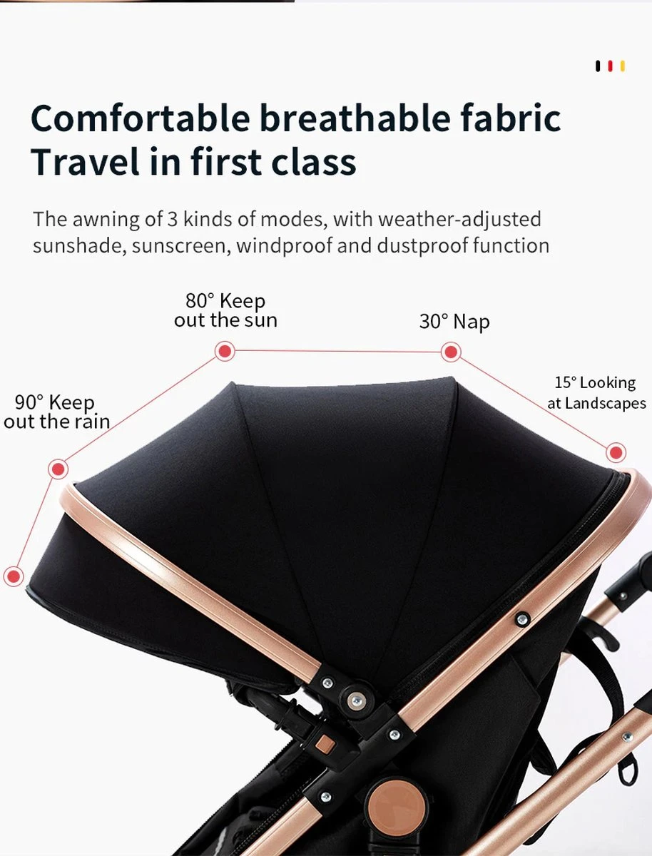 Gedurende de winterperiode wil je natuurlijk niet dat jouw kleintje ziek wordt… Deze luxe kinderwagen is op elk seizoen voorbereid. Zo kun je gedurende de winterperiode het PU-leer volledig afsluiten, terwijl in de zomerperiode je juist alles kunt loshalen zodat er meer ventilatie ontstaat.