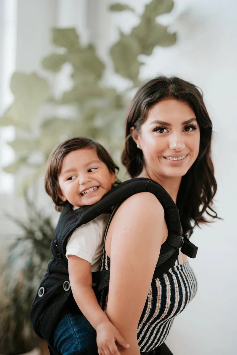 De Tula Free-to-Grow is momenteel eigenlijk de standaard als het gaat om ergonomische babydragers. Geschikt als buik- en rugdrager, draag je je kindje zonder insert vrijwel vanaf de geboorte (3,2 kilo) maat 56, in een goede ergonomische houding. Dit betekent dat je kindje een goede knie-tot-knie ondersteuning heeft, de billetjes lager zitten dan de knietjes (M-houding) en dat de rug een natuurlijke bolling kan aannemen. Maar ook dat de drager het gewicht van je kindje goed verdeelt over jouw bovenlichaam. Kortom: alles wat je zoekt in een babydrager!De Free-to-Grow groeit als het ware met je kindje mee omdat het rugpand zowel in de breedte als in de lengte te verstellen is. In de lengte kan dit door handige gespen, in de breedte door een systeem met drukknopen. Hierdoor is de Free-to-Grow in de breedte in 3 standen te gebruiken voor optimale ondersteuning.